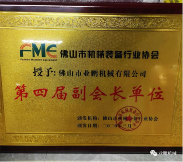 業(yè)鵬機(jī)械榮任“佛山市機(jī)械裝備行業(yè)協(xié)會(huì)副會(huì)長(zhǎng)單位”